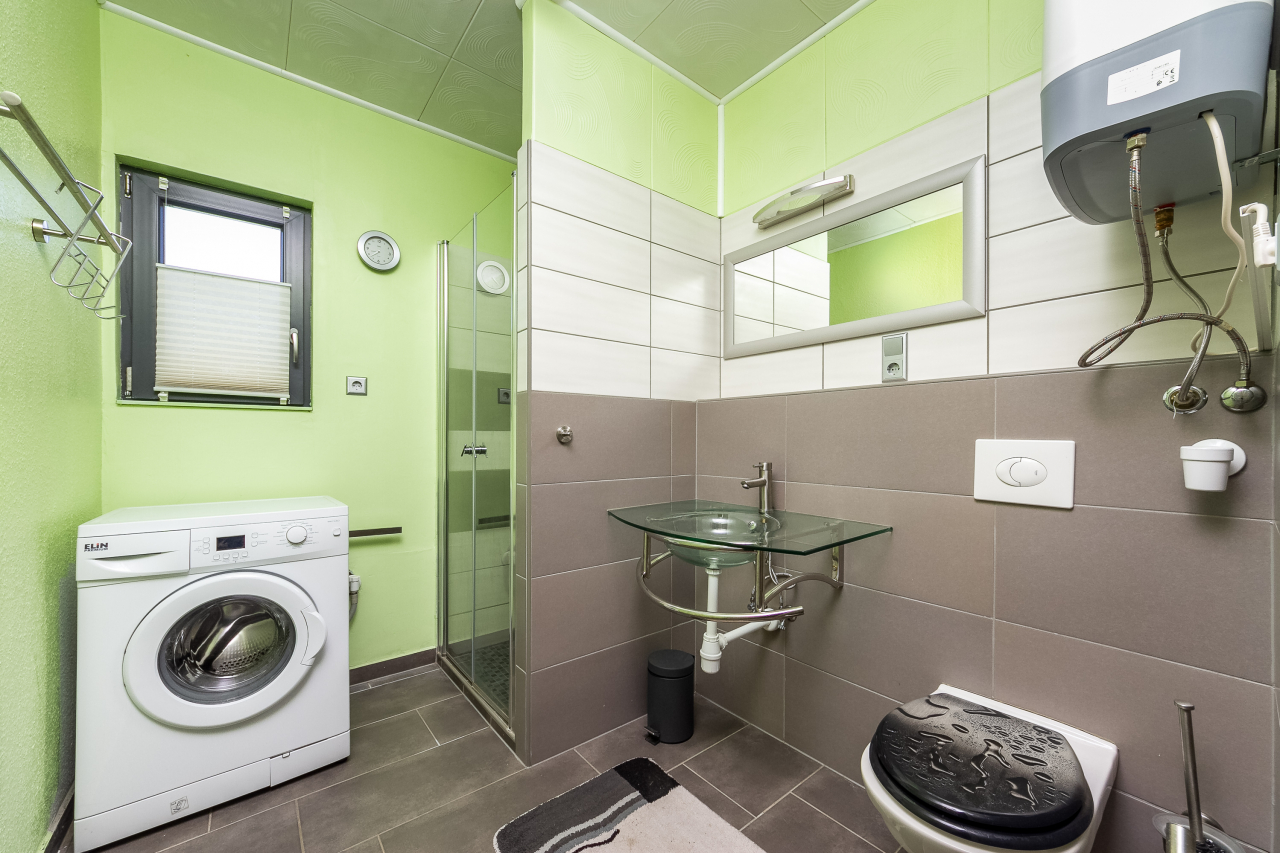 Nagyobb ház 4 főre: tágas nappali-háló ( 2 fekhellyel ) konyhasarokkal, egy kétágyas szoba, zuhanyzó/WC, terasz.