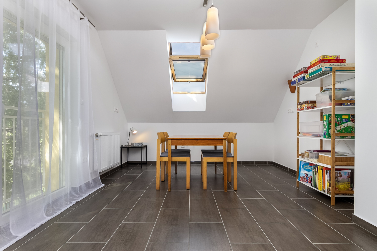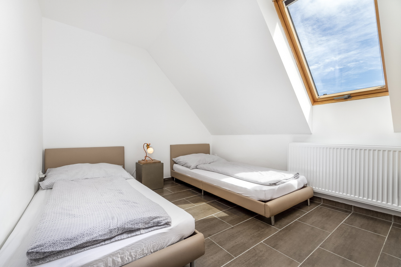 Emelet: nappali, két kétágyas szoba, zuhanyzó, WC