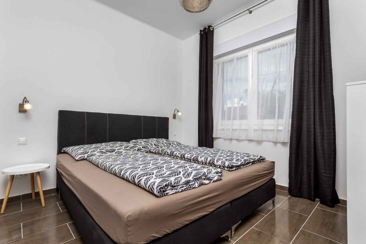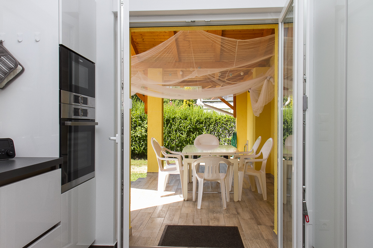 Önálló, modern berendezésű nyaraló 8 főre strandközeli helyen mosógéppel, mosogatógéppel. Kert, kerti bútor, kerti grill, napozóágyak, autóbeálló. Kis termetű kutya megengedett.