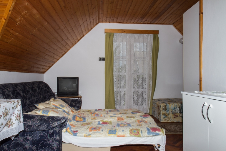 Emelet: Egy kétágyas szoba, egy abból nyíló egyágyas szoba, zuhanyzó/WC.