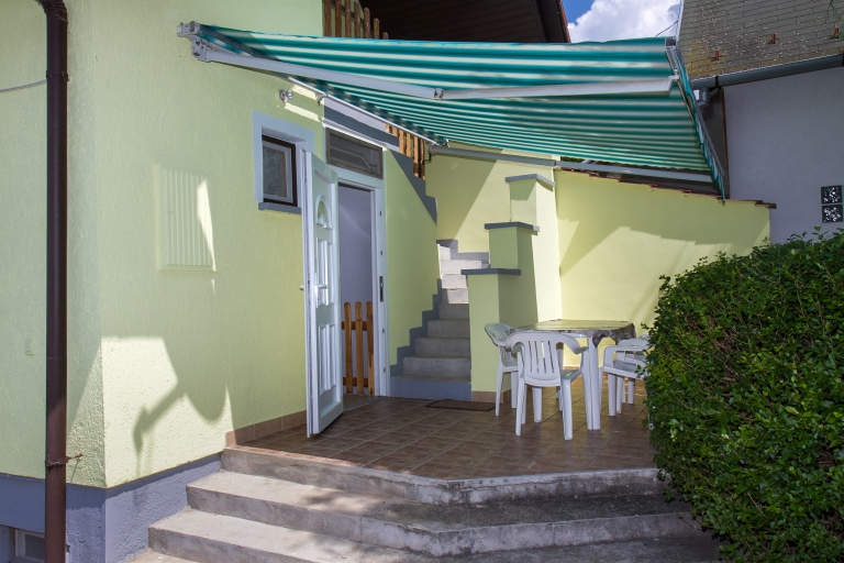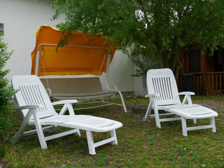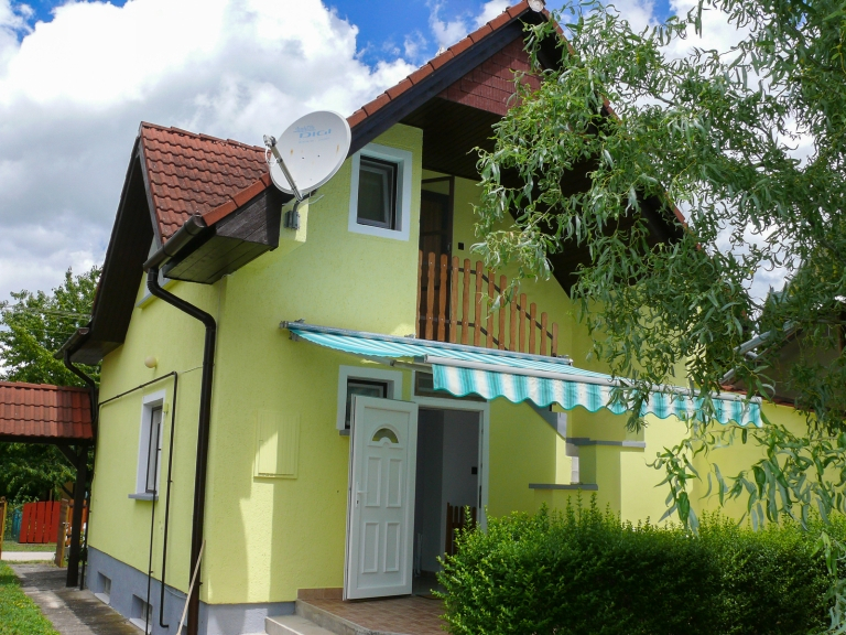 Információk: Önálló nyaraló 4-5 főre csendes helyen 2 separált lakással, külső lépcsővel. Kert, kerti bútor, kerti grill, napozóágyak, hintaágy, autóbeálló, TV.