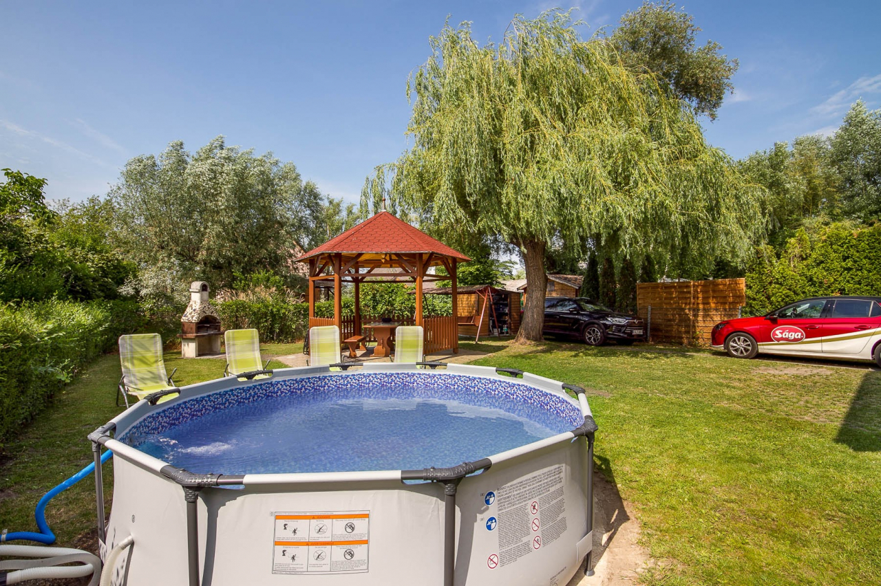 Információk: Klimatizált nyaralólakás az emeleten 4+1 főre strandközeli helyen medencével, wifivel. Kert, kerti bútor, kerti grill, autóbeálló, SAT-TV, hintaágy, plasztik medence, klíma ( felárért ). A földszinti lakás is bérelhető ( BM 54-es kódszámon ).