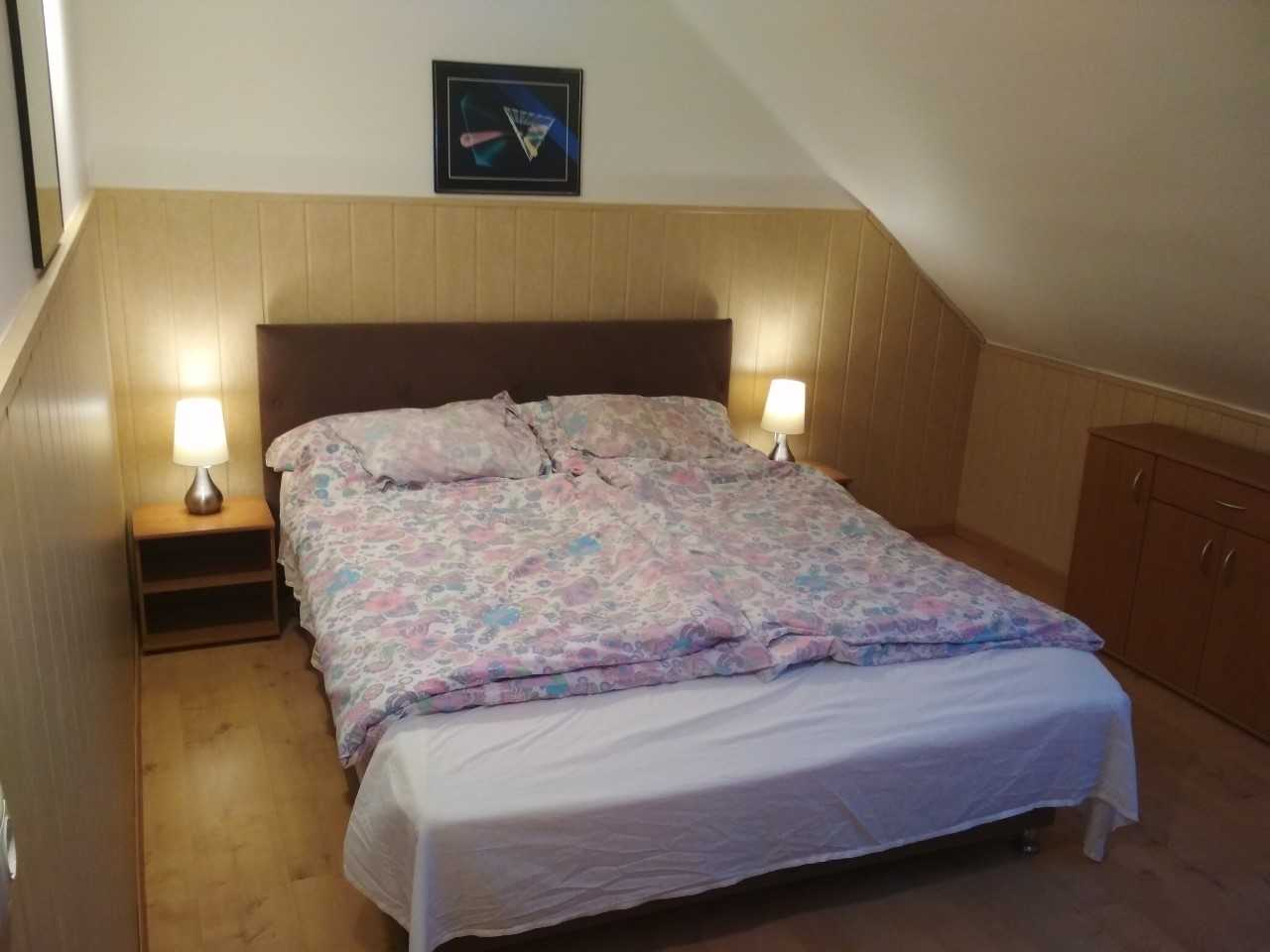 Emelet: Nappali, 2 kétágyas szoba, fürdőszoba, WC, balkon.