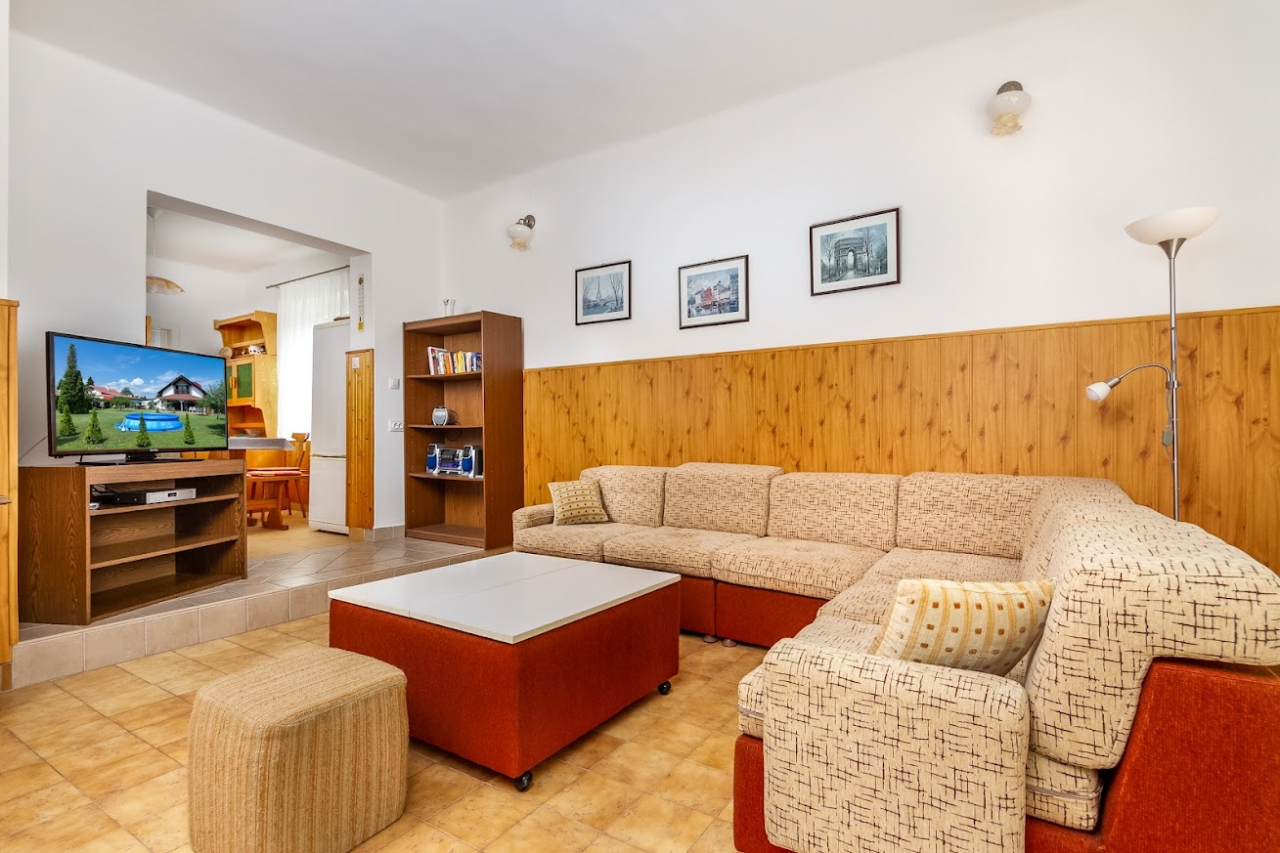 Információk: Önálló, klimatizált nyaraló 8 főre wifivel és medencével. Szép, nagy kert, kerti garnitúra, kerti grill, autóbeálló, TV. Csak családokat fogadnak.