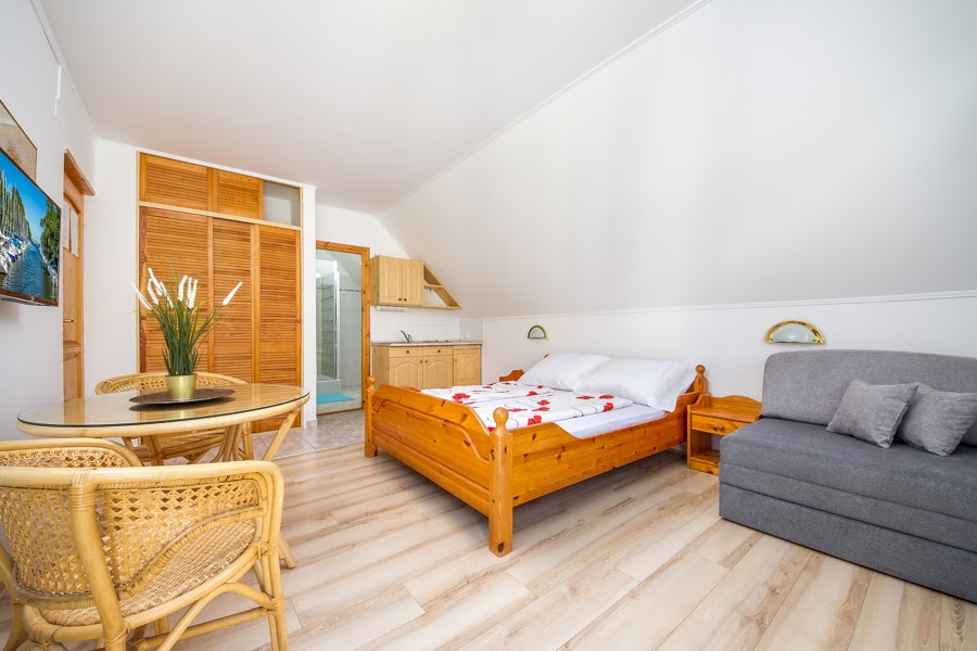 Információk: Apartman 2+2 főre wifivel szép, új, modern, medencés apartmanházban közvetlenül egy szabadstrand mellett, natúr fa és rattan bútorokkal. Szép, ápolt kert, kerti bútor, kerti grill, kerti pavilon, autóbeálló, TV, széf, légkondicionáló ( felárért ), közös medencehasználat.