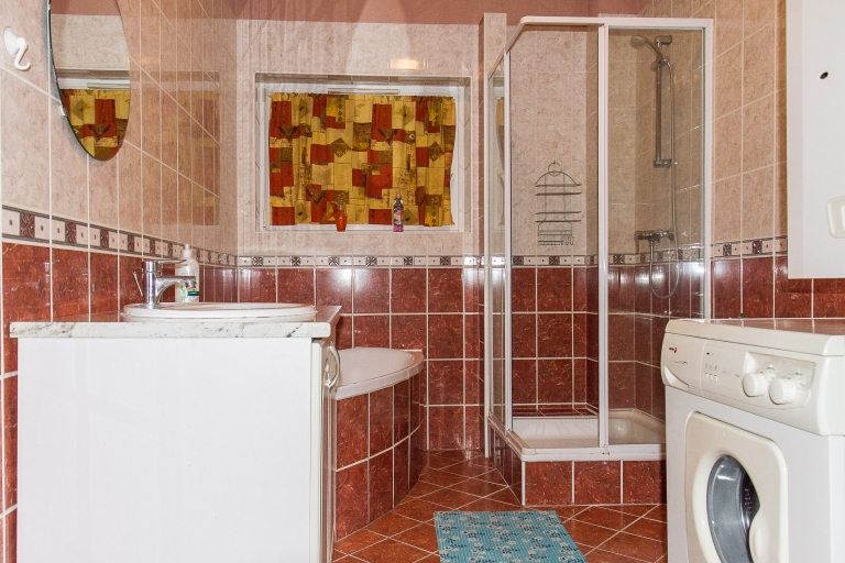 Földszint: Nappali főző- és étkezősarokkal, fürdőszoba (káddal és zuhanyzóval), WC, egy kétágyas szoba.
