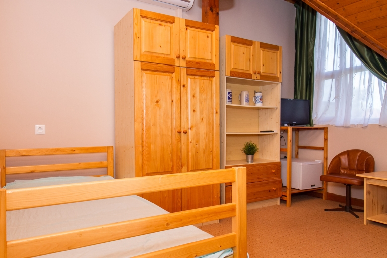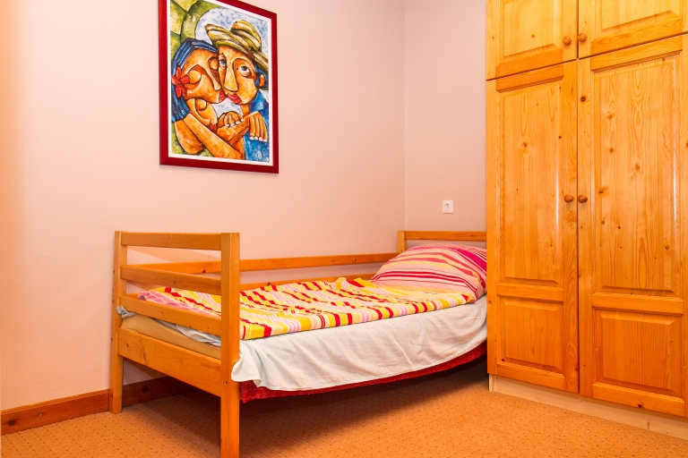 Emelet: Szoba egy fekhellyel, egy hálófülke 2 főre, zuhanyzó/WC, közös konyhahasználat, közös nappali étkezővel, mosógéphasználat