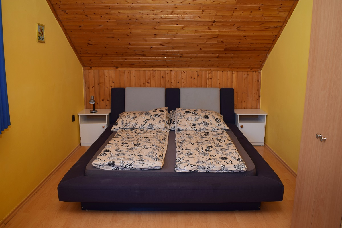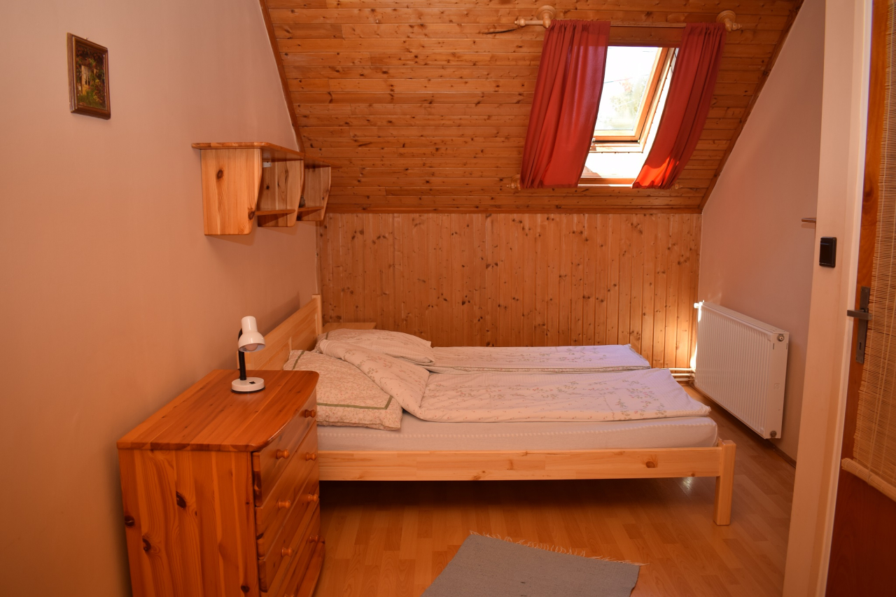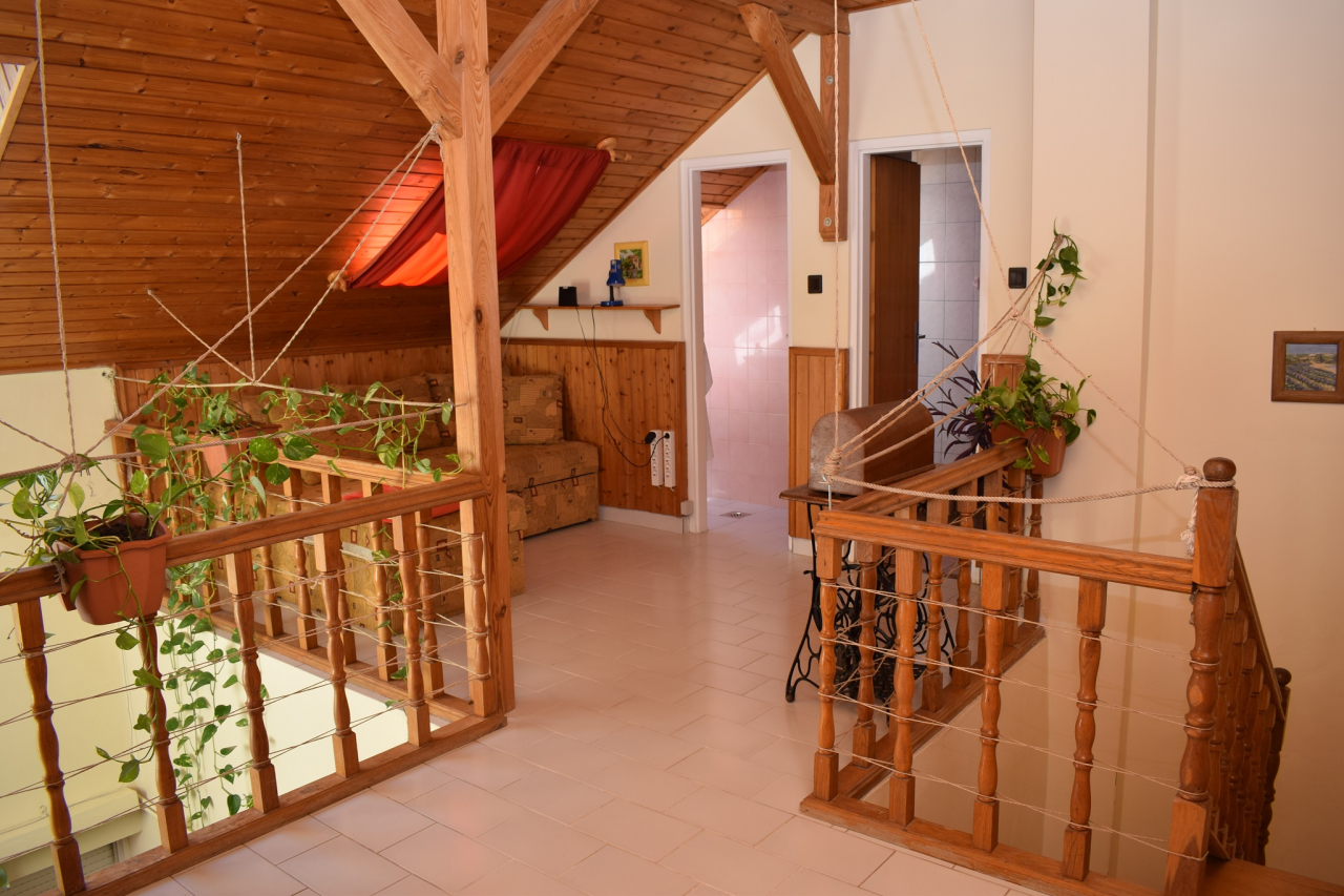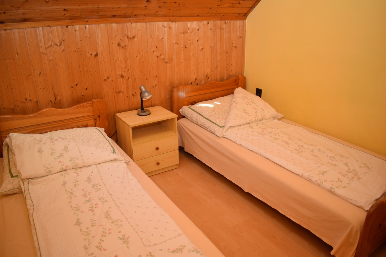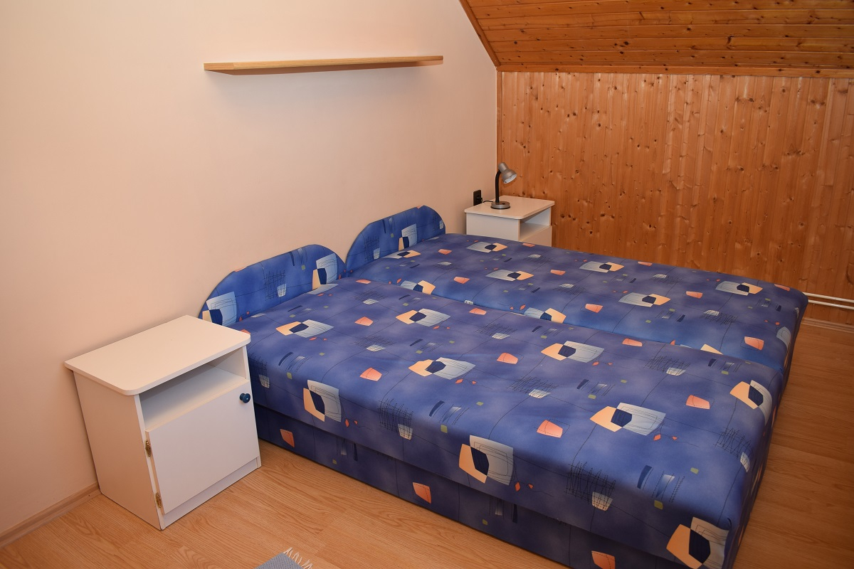 Emelet: Négy kétágyas szoba, galéria egy pótággyal, zuhanyzó, WC.