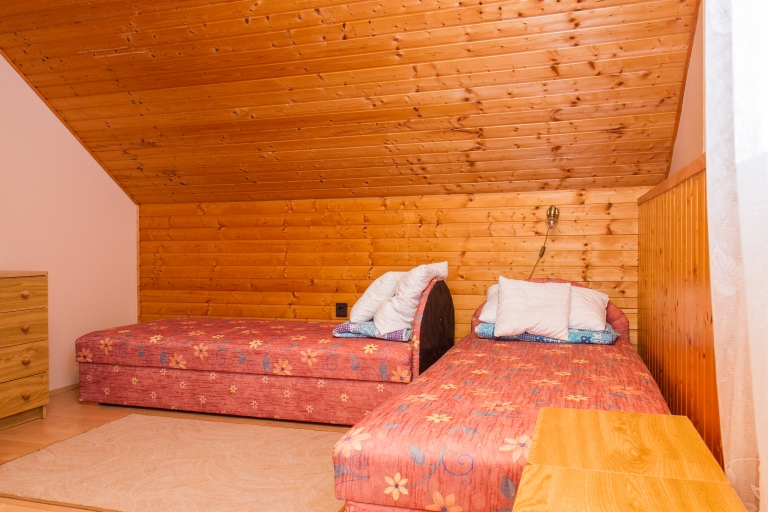 OG: Dusche/WC, drei Zweibettzimmer, Balkon.
