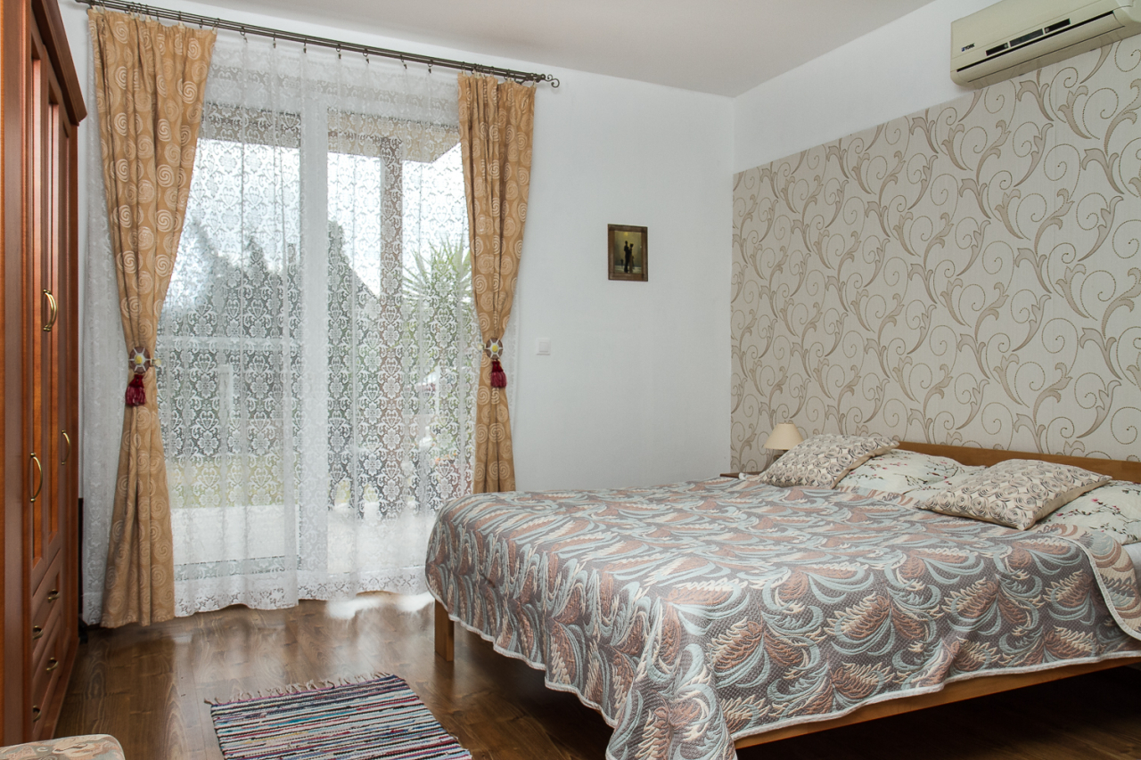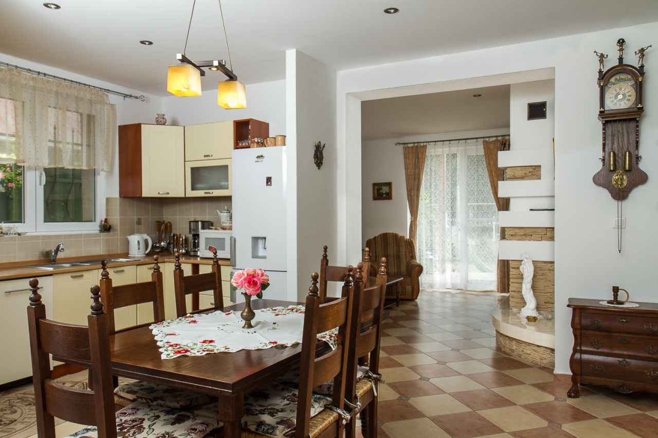Információk: Szépen berendezett, klimatizált ikernyaraló fele ( első lakás ) 5 főre wifivel, mosógéppel, mosogatógéppel strandközeli helyen. Közös használatú kert, kerti bútor, kerti grill, hintaágy, napozóágyak, kerti pavilon, TV, autóbeálló, klíma. A hátsó lakás is foglalható BBO-035 kódszám alatt. Telek mögött fut a vasút.